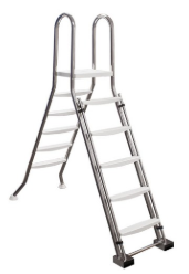 Escalera piscina elevada con plataforma para piscina de altura 1,20 ó 1,35 mts AISI-304.